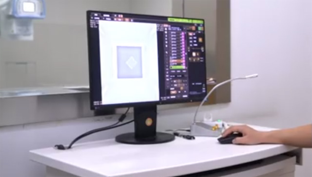 DR主要有X射線輻射源,機架攝影床,影像增強器,高壓發(fā)生器和計算機系統(tǒng)組成。首先檢查DR系統(tǒng)的整體外觀,標有廠家信息,型號,編號參數(shù),生產(chǎn)日期清晰可認的標志??纯纯諝獗柔寗幽茉趺礄z定,首先打開視野燈。然后把探測器放到視野燈照射中心。調節(jié)視野窗值最大。調節(jié)探測器焦點到探測器1米的距離。最后打開探測器。接下來到控制室設置曝光條件進行曝光,更改千伏為70千伏。調節(jié)為10毫秒,按手柄進行曝光,保持條件不變再重復曝光兩次。然后再進去DR室讀取計量儀數(shù)據(jù)并記錄。讀取3次計數(shù)測量數(shù)值。并且記錄處理。這個就是空氣比釋動能測定過程。目前流行的計量儀都集成了輻射輸出的值和管電壓測量功能。輻射輸出的值和管電壓可以直接通過計量儀讀取數(shù)值。