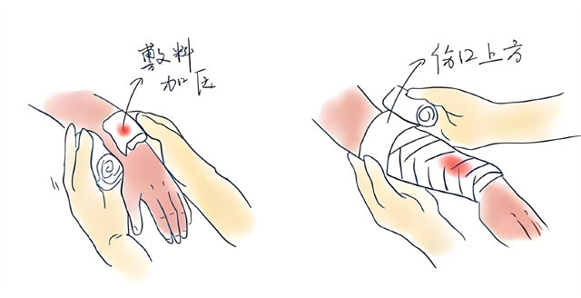 (2)一般小動脈和靜脈出血可以用加壓包扎止血法。比較大的動脈出血,應用止血帶止血。在緊急情況下,用壓迫法止血根據其他出血情況使用不同的止血法。